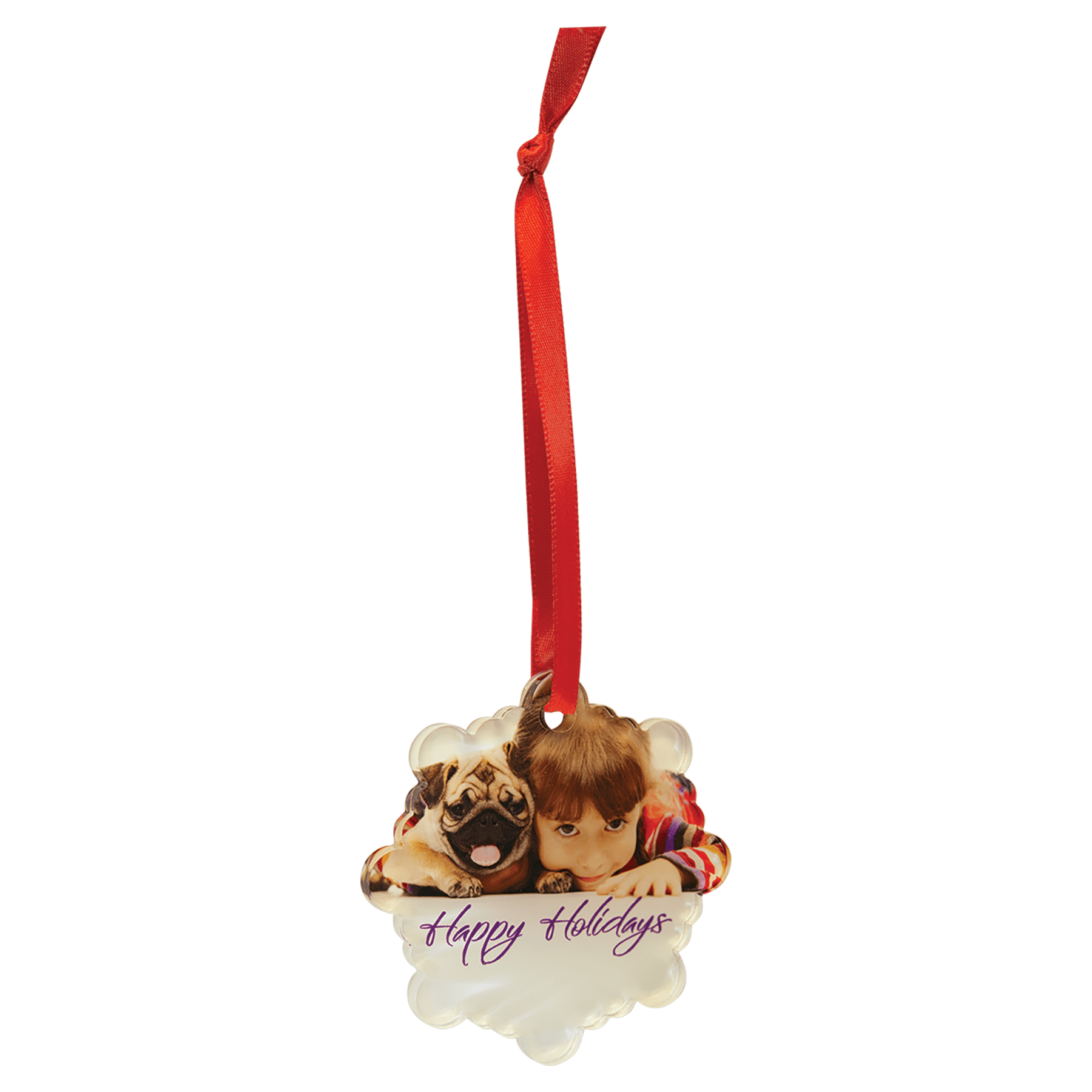 Acrylic ornaments personalized in full color with your photo or other graphics will last for years and become a cherished part of holiday memories and tradition. The ornaments are available in a variety of shapes and sizes and come with a red ribbon for hanging. A gift anyone would enjoy receiving, they're perfect for gift shops or fundraisers!